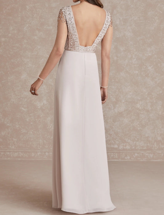 Regular price $119.99 USDRegular priceUnit price / per$199.99 USDSale price $119.99 USDSaleSheath / Column Evening Gown Empire Dress Formal Evening Floor Length Short Sleeve Square Neck Chiffon with Crystals