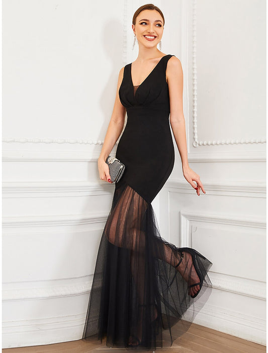 Regular price $122.99 USDRegular priceUnit price / per$202.99 USDSale price $122.99 USDSaleMermaid / Trumpet Evening Gown Elegant Dress Wedding Guest Floor Length Sleeveless V Neck Tulle V Back with Draping