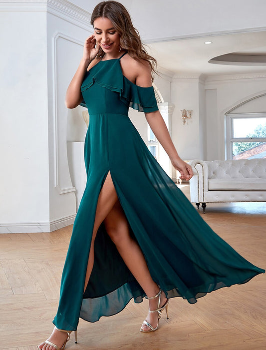 Regular price $125.99 USDRegular priceUnit price / per$205.99 USDSale price $125.99 USDSaleA-Line Elegant Vintage Party Wear Formal Evening Dress Spaghetti Strap Short Sleeve Ankle Length Chiffon with Ruffles Slit