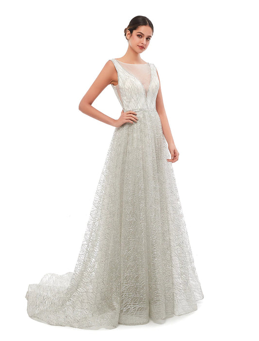 Regular price $149.99 USDRegular priceUnit price / per$229.99 USDSale price $149.99 USDSaleA-Line Evening Gown Vintage Dress Prom Court Train Sleeveless Illusion Neck Sequined