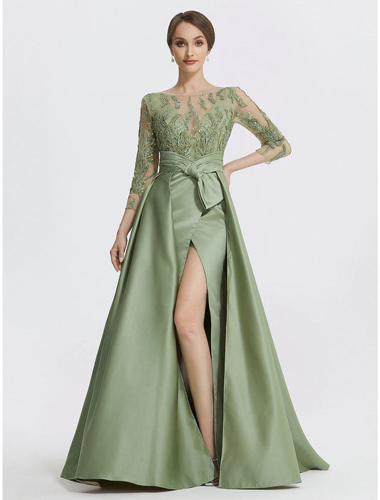 Regular price $139.99 USDRegular priceUnit price / per$219.99 USDSale price $139.99 USDSaleA-Line Evening Gown Elegant Dress Formal Floor Length 3/4 Length Sleeve Jewel Neck Satin with Slit Embroidery