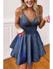 A-Line Cocktail Dresses Party Dress Homecoming Short / Mini Sleeveless V Neck Satin Backless with Pleats