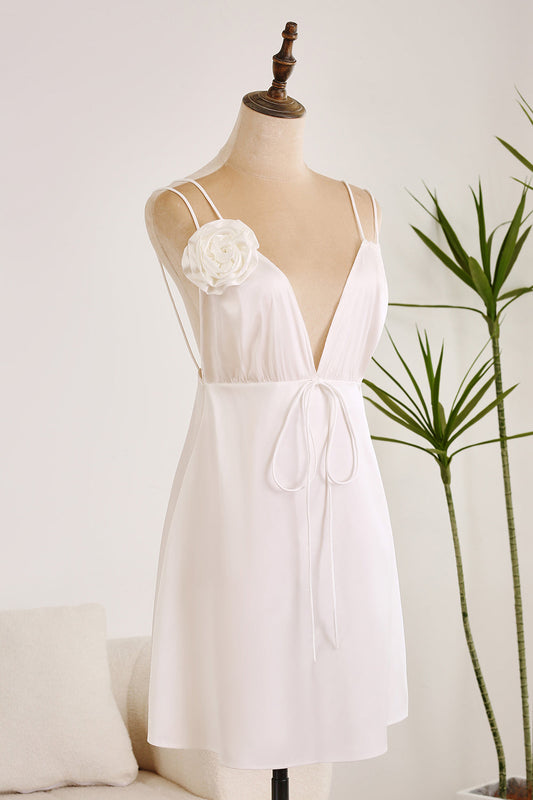 Regular price $98.99 USDRegular priceUnit price / per$178.99 USDSale price $98.99 USDSaleSimulated Silk Satin Deep V Neck Backless Cute White Short Graduation Dress Pure Color