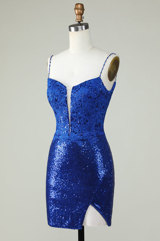 Spaghetti Straps Tight Sequined Homecoming Dress Sparkly