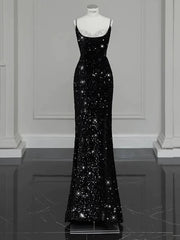 Mermaid / Trumpet Evening Gown Sexy Long Dress Formal Floor Length Sleeveless Spaghetti Strap Sequined with Bow(s) Crystals Sequin