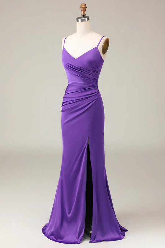 Regular price $178.99 USDRegular priceUnit price / per$258.99 USDSale price $178.99 USDSaleSpaghetti Straps V-neck Sheath Satin Bridesmaid Dress with Slit Pure Color