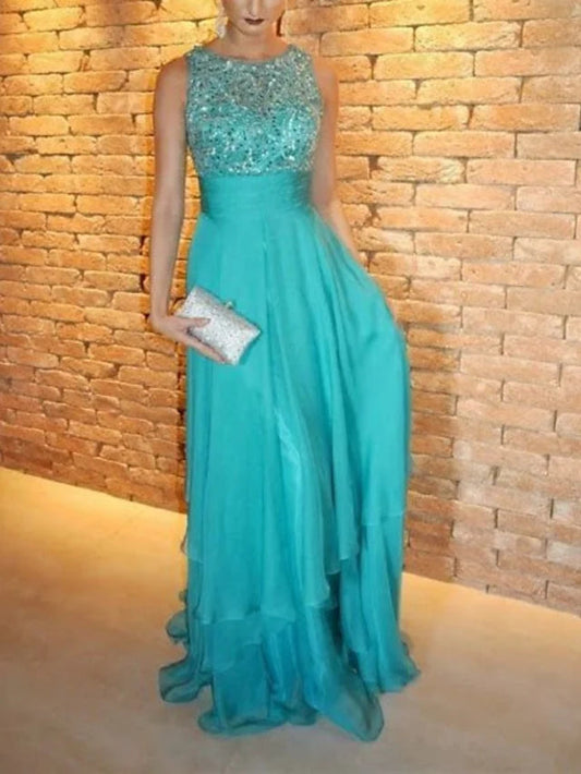 Regular price $125.99 USDRegular priceUnit price / per$205.99 USDSale price $125.99 USDSaleA-Line Evening Gown Tiered Prom Dress Formal Sweep / Brush Train Sleeveless Jewel Neck Chiffon