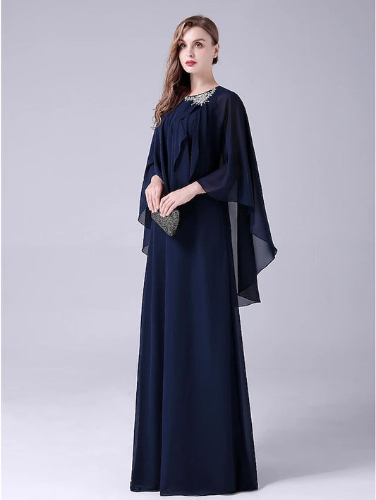 Sheath / Column Mother of the Bride Dress Elegant Bateau Neck Floor Length Chiffon Sleeveless
