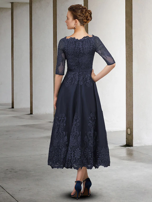 Regular price $122.90 USDRegular priceUnit price / per$202.90 USDSale price $122.90 USDSaleA-Line Mother of the Bride Dress Wedding Guest Party Elegant Scoop Neck Tea Length Satin Lace Half Sleeve