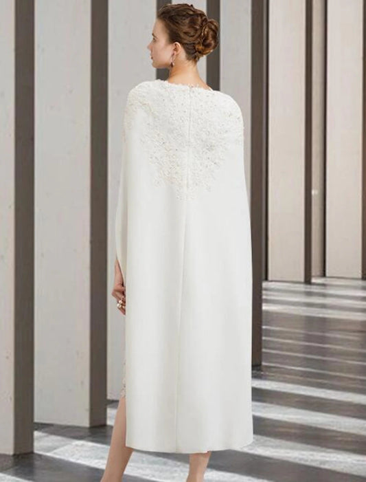 Regular price $135.99 USDRegular priceUnit price / per$215.99 USDSale price $135.99 USDSaleSheath Mother of the Bride Dress Cape Dress Formal Wedding Guest Elegant Jewel Neck Floor Length Chiffon Short Sleeve
