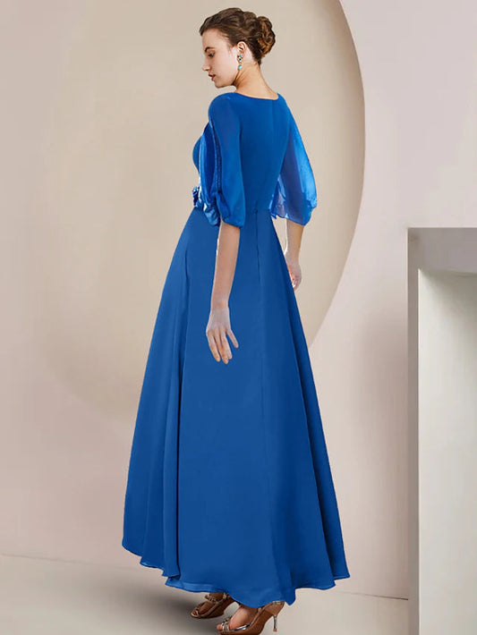 Regular price $122.99 USDRegular priceUnit price / per$202.99 USDSale price $122.99 USDSaleBall Gown A-Line Mother of the Bride Dress Formal Classic & Timeless Elegant & Luxurious Elegant Scoop Neck Floor Length Chiffon Corded Lace 3/4 Length Sleeve with Sashes / Ribbons