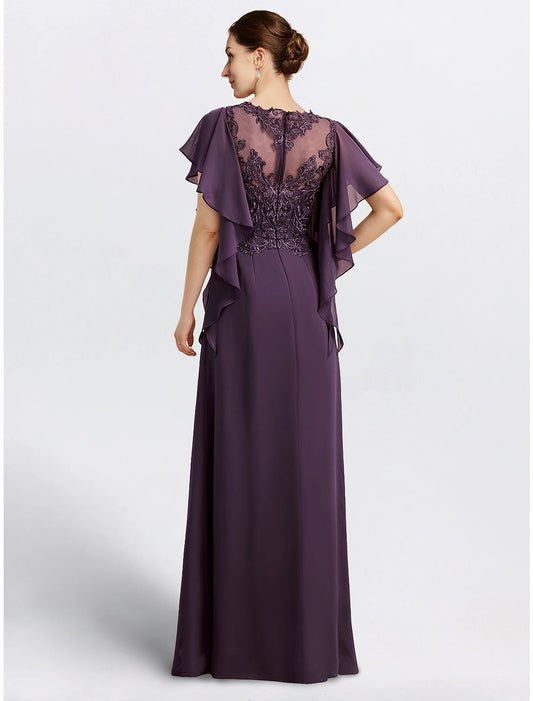 Regular price $135.99 USDRegular priceUnit price / per$215.99 USDSale price $135.99 USDSaleSheath Mother of the Bride Dress Cape Dress Formal Wedding Guest Elegant Jewel Neck Floor Length Chiffon Short Sleeve
