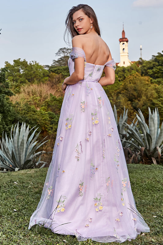 Regular price $169.99 USDRegular priceUnit price / per$249.99 USDSale price $169.99 USDSaleLavender A Line Off The Shoulder Tulle Formal Dress With Embroidery Prom Dress With Flowers