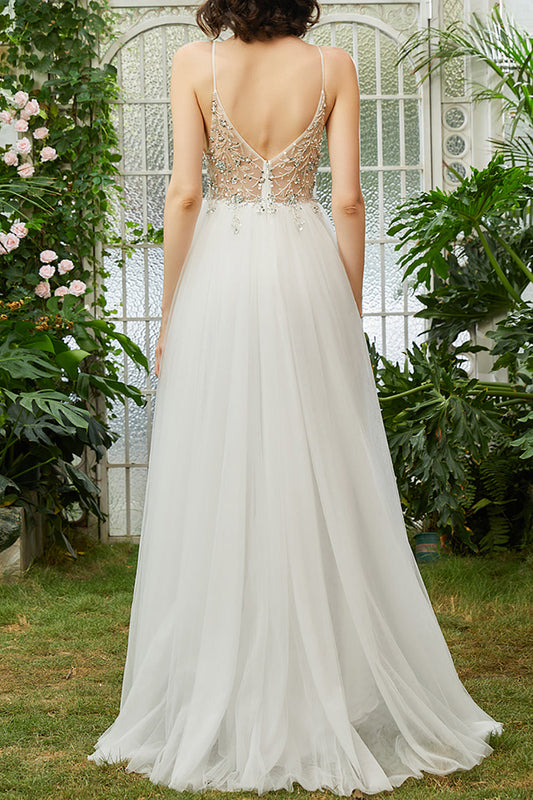 Regular price $149.99 USDRegular priceUnit price / per$229.99 USDSale price $149.99 USDSaleTulle Spaghetti Straps White Long Prom Dress with Beading Sexy