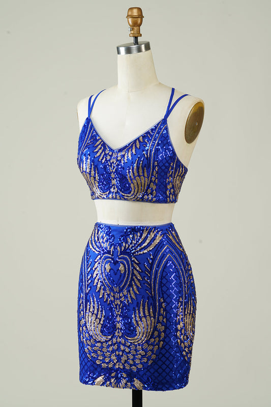 Regular price $123.99 USDRegular priceUnit price / per$203.99 USDSale price $123.99 USDSaleTwo Piece Royal Blue Tight Short Glitter Homecoming Dress With Sequins Sexy