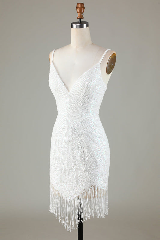 Regular price $119.99 USDRegular priceUnit price / per$199.99 USDSale price $119.99 USDSaleFringes White Tight Glitter Homecoming Dress With Lace-Up Back Short