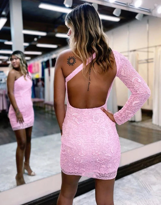 Regular price $116.99 USDRegular priceUnit price / per$196.99 USDSale price $116.99 USDSaleShoulder Open Back Lace Homecoming Dress Pink Sexy Short