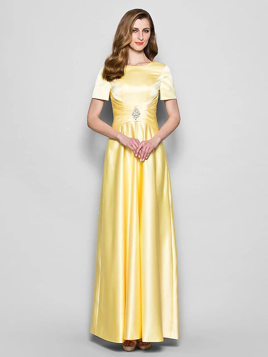 Regular price $135.99 USDRegular priceUnit price / per$215.99 USDSale price $135.99 USDSaleA-Line Mother of the Bride Dress Vintage Plus Size Elegant Jewel Neck Floor Length Satin Short Sleeve with Sash / Ribbon Ruched