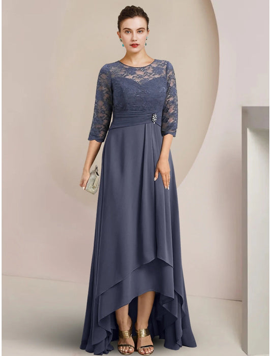 Regular price $138.99 USDRegular priceUnit price / per$218.99 USDSale price $138.99 USDSaleA-Line Mother of the Bride Dress Wedding Guest Elegant Jewel Neck Asymmetrical Chiffon Half Sleeve with Lace Crystal Brooch
