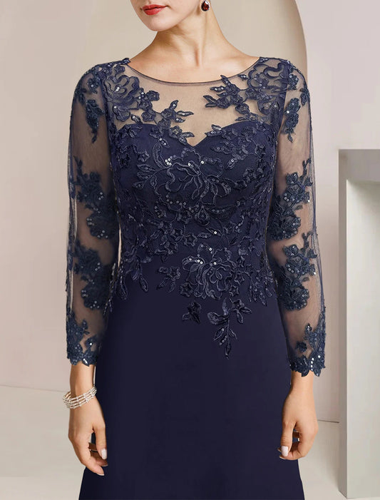 Regular price $119.99 USDRegular priceUnit price / per$199.99 USDSale price $119.99 USDSaleMermaid / Trumpet Mother of the Bride Dress Wedding Guest Elegant Scoop Neck Tea Length Chiffon Long Sleeve with Crystals