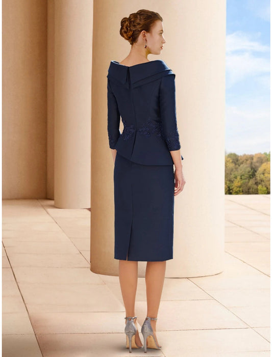 Regular price $123.99 USDRegular priceUnit price / per$203.99 USDSale price $123.99 USDSaleTwo Piece Sheath / Column Mother of the Bride Dress Wedding Guest Elegant Petite Scoop Neck Knee Length Satin 3/4 Length Sleeve with Feather