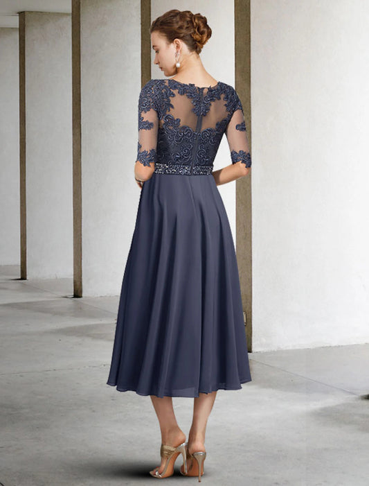 Regular price $139.99 USDRegular priceUnit price / per$219.99 USDSale price $139.99 USDSaleA-Line Mother of the Bride Dress Luxurious Elegant Jewel Neck Tea Length Chiffon Lace Tulle Half Sleeve with Crystals