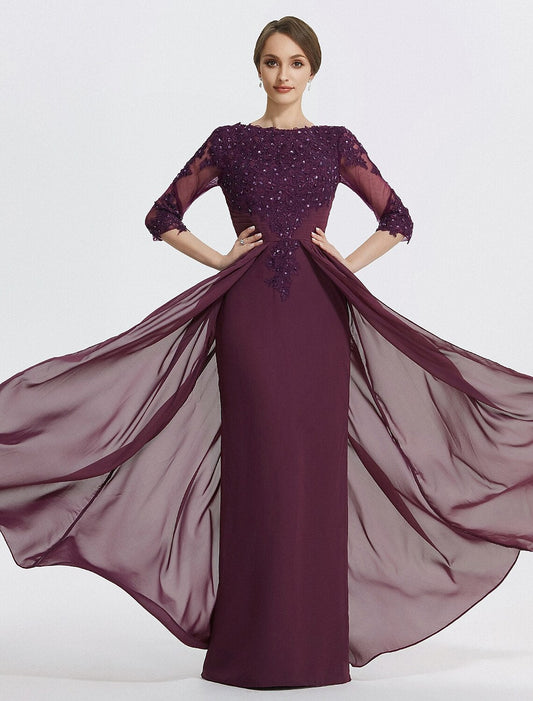 Regular price $116.99 USDRegular priceUnit price / per$196.99 USDSale price $116.99 USDSaleA-Line Mother of the Bride Dress Formal Wedding Guest Elegant Jewel Neck Floor Length Chiffon Lace 3/4 Length Sleeve with Lace