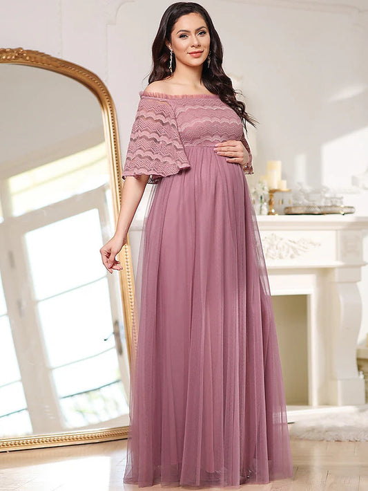 Regular price $118.99 USDRegular priceUnit price / per$198.99 USDSale price $118.99 USDSaleA-Line Mother of the Bride Dress Maternity Elegant Off Shoulder Floor Length Lace Tulle Sleeveless with Tier Beautiful