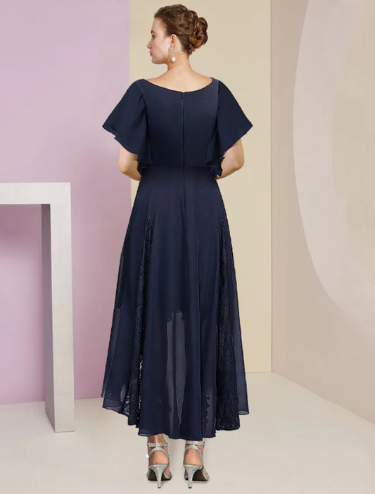 Regular price $119.99 USDRegular priceUnit price / per$199.99 USDSale price $119.99 USDSaleA-Line Mother of the Bride Dress Kentucky Derby Dresses Formal Wedding Guest Elegant Bateau Neck Asymmetrical Ankle Length Chiffon Short Sleeve with Flower