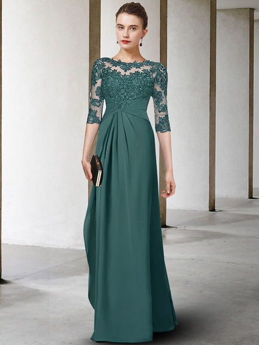 Regular price $118.99 USDRegular priceUnit price / per$198.99 USDSale price $118.99 USDSaleSheath / Column Plus Size Curve Mother of the Bride Dress Elegant Jewel Neck Floor Length Chiffon Lace Half Sleeve with Pleats Ruched