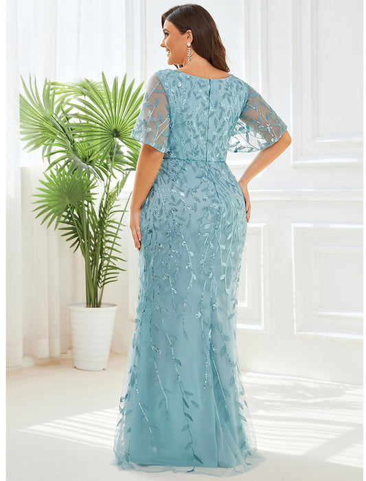 Regular price $145.90 USDRegular priceUnit price / per$225.90 USDSale price $145.90 USDSaleMermaid / Trumpet Evening Gown Sparkle Dress Formal Floor Length Short Sleeve V Neck Fall Wedding Guest Tulle