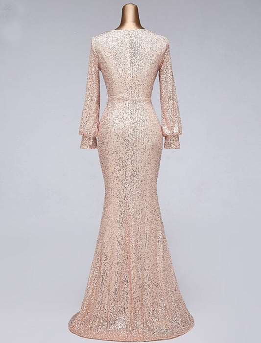 Regular price $116.99 USDRegular priceUnit price / per$196.99 USDSale price $116.99 USDSaleMermaid / Trumpet Evening Gown Elegant Dress Wedding Guest Floor Length Long Sleeve V Neck Tulle with Sequin