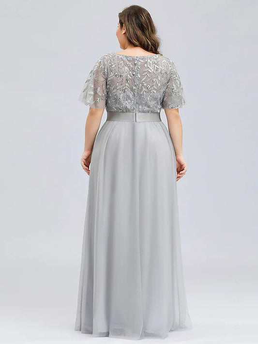Regular price $159.99 USDRegular priceUnit price / per$239.99 USDSale price $159.99 USDSaleA-Line Prom Dresses Plus Size Dress Wedding Guest Floor Length Short Sleeve Jewel Neck Chiffon