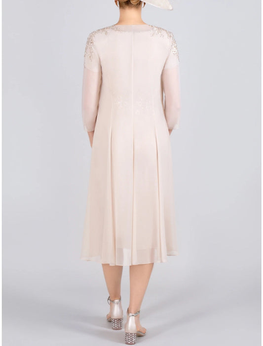 Regular price $126.99 USDRegular priceUnit price / per$206.99 USDSale price $126.99 USDSaleTwo Piece Mother of the Bride Dress Wedding Guest Elegant Petite V Neck Knee Length Chiffon 3/4 Length Sleeve with Beading Appliques