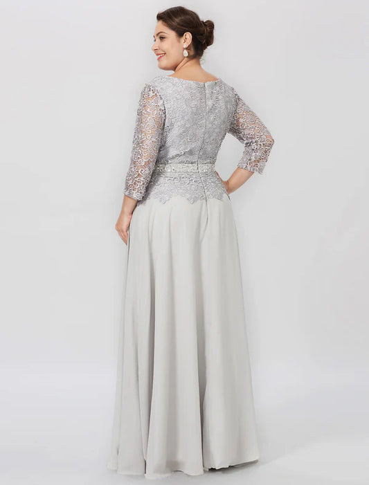 Regular price $179.99 USDRegular priceUnit price / per$259.99 USDSale price $179.99 USDSaleSheath / Column Mother of the Bride Dress Formal Elegant Plus Size Jewel Neck Floor Length Chiffon Corded Lace 3/4 Length Sleeve No with Lace Silver