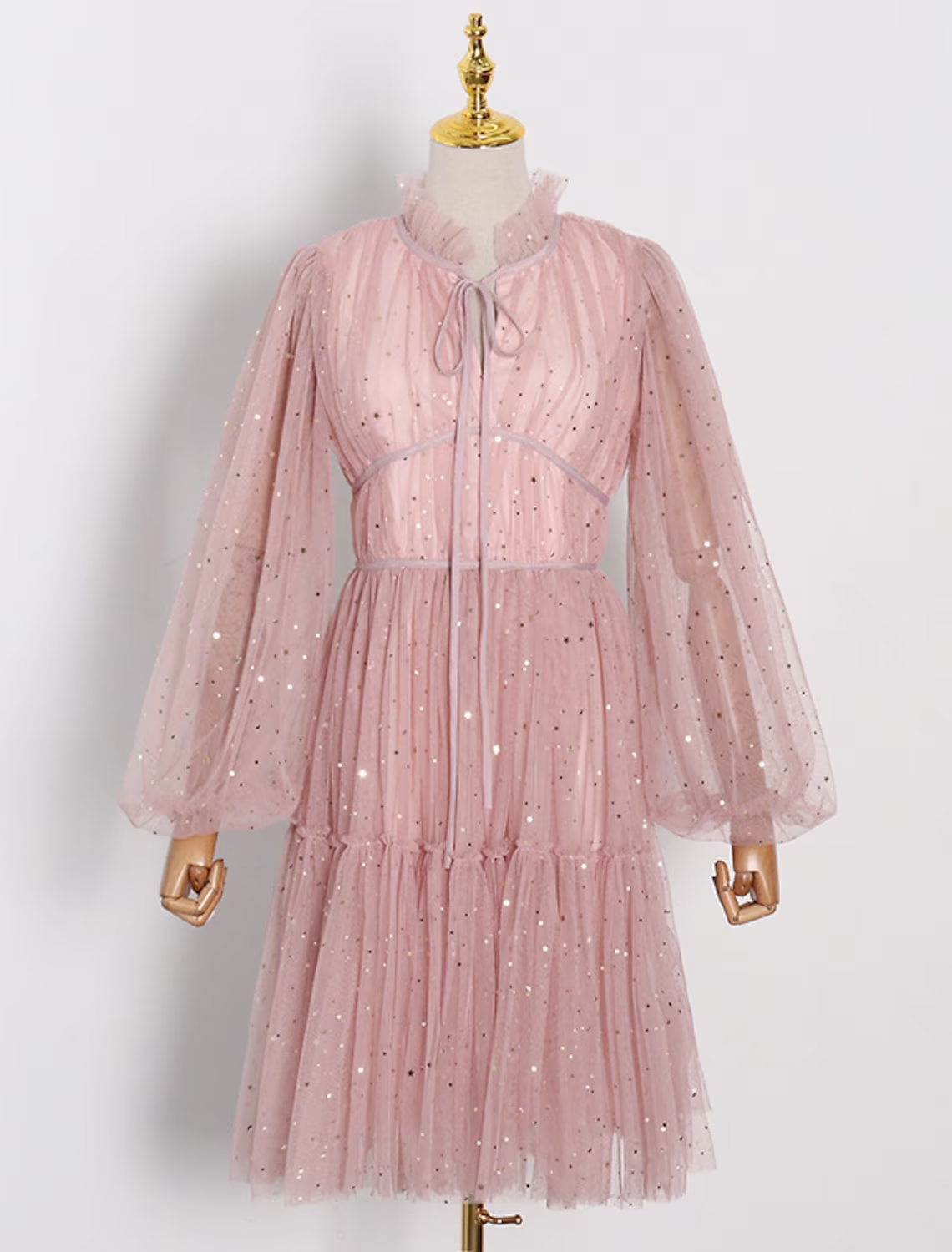 A-Line Party Dresses Glittering Dress Homecoming Knee Length Long Sleeve High Neck Tulle