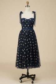 A-Line Tea Length Party Dress WIth Star Pattern