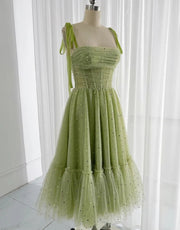 Tie Straps Knee Length Tulle Glitter Party Dress