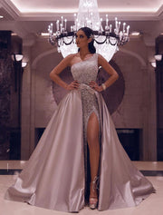 Women‘s Prom Party Dress Sequin Dress Swing Dress Long Dress Maxi Dress Green Pink Sleeveless Pure Color Sequins Spring Summer One Shoulder Fashion Party Evening Party Wedding Guest
