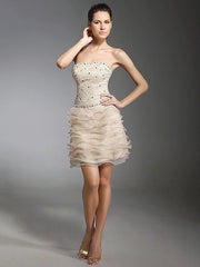 Sheath / Column Dress Holiday Short / Mini Sleeveless Strapless Lace with Lace Beading