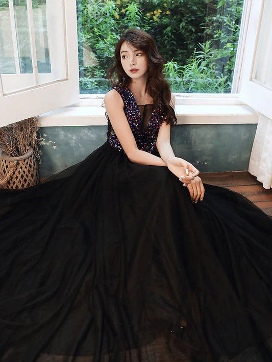 Regular price $149.99 USDRegular priceUnit price / per$229.99 USDSale price $149.99 USDSaleA-Line Prom Dresses Elegant Dress Party Wear Floor Length Sleeveless V Neck Sequined V Back