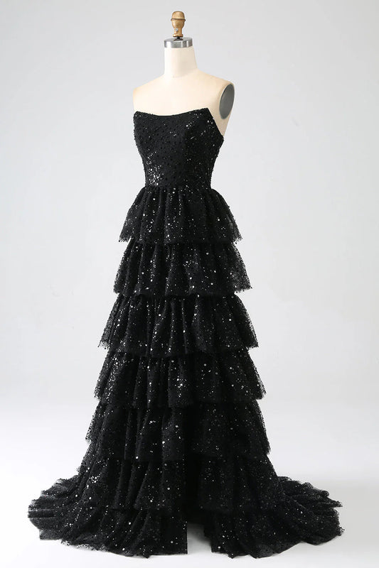 Regular price $169.99 USDRegular priceUnit price / per$249.99 USDSale price $169.99 USDSaleA-Line Sequins Tiered Prom Dress with Slit Off Shoulder Sparkly Long