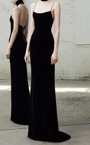 Mermaid Black Spaghetti Straps Long Formal Prom Dress Elegant Party Evening Gown Simple Graduation Dress
