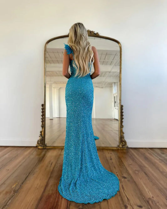 Regular price $125.99 USDRegular priceUnit price / per$205.99 USDSale price $125.99 USDSaleSparkly Mermaid One Shoulder Blue Sequins Long Prom Dresses Evening Dress With Slit