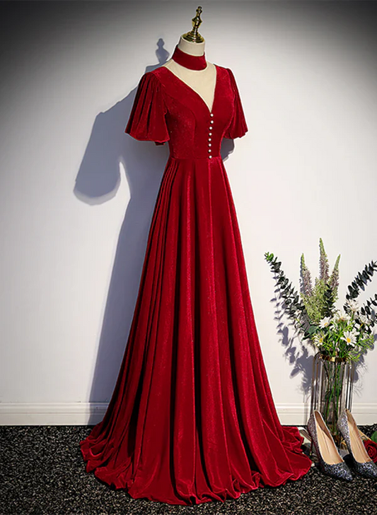 Regular price $139.99 USDRegular priceUnit price / per$219.99 USDSale price $139.99 USDSaleA-Line Red High Neckline Velvet Long Party Dress Short Sleeves Velvet Prom Dress Evening Dress