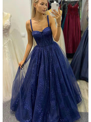 Ball Gown A-Line Prom Dresses Sparkle & Shine Dress Formal Floor Length Sleeveless Sweetheart Tulle Backless with Glitter Pleats
