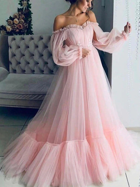 Regular price $126.99 USDRegular priceUnit price / per$206.99 USDSale price $126.99 USDSaleA-Line Minimalist Elegant Engagement Prom Dress Off Shoulder Long Sleeve Floor Length Tulle