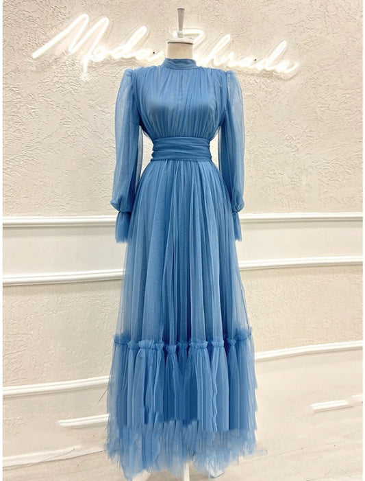 Regular price $173.99 USDRegular priceUnit price / per$253.99 USDSale price $173.99 USDSaleA-Line Prom Dresses Elegant Dress Formal Ankle Length Long Sleeve High Neck Tulle with Pleats