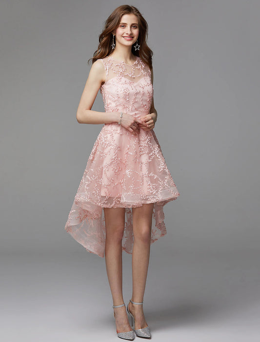 A-Line Prom Dresses Elegant Dress Wedding Guest Sweep / Brush Train Sleeveless Jewel Neck Tulle