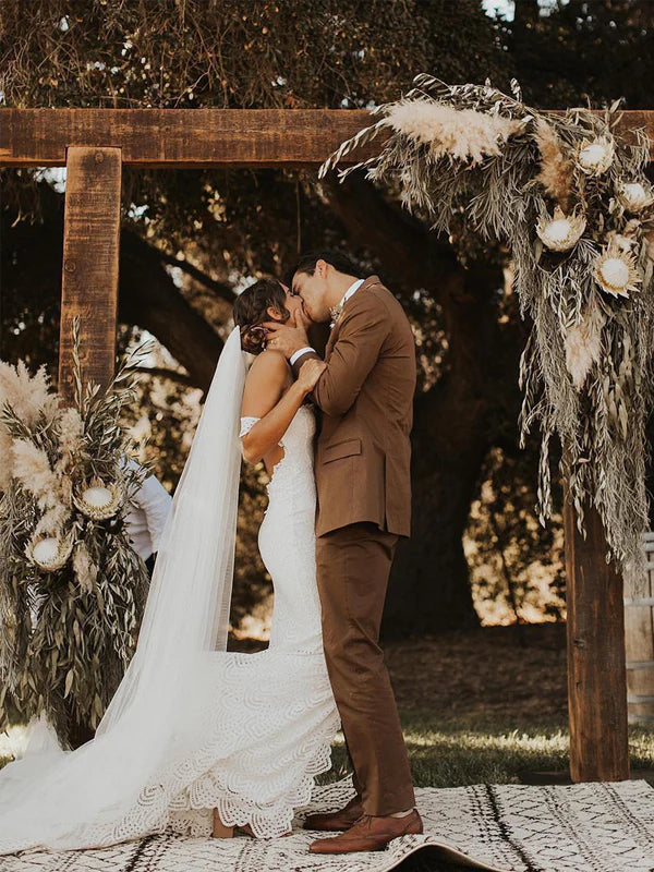 Attractive Off-the-shoulder Wedding Gowns Lace Sheath Bridal Dresses With Slit Sexy - US 2 / UK 6 / EU 32
